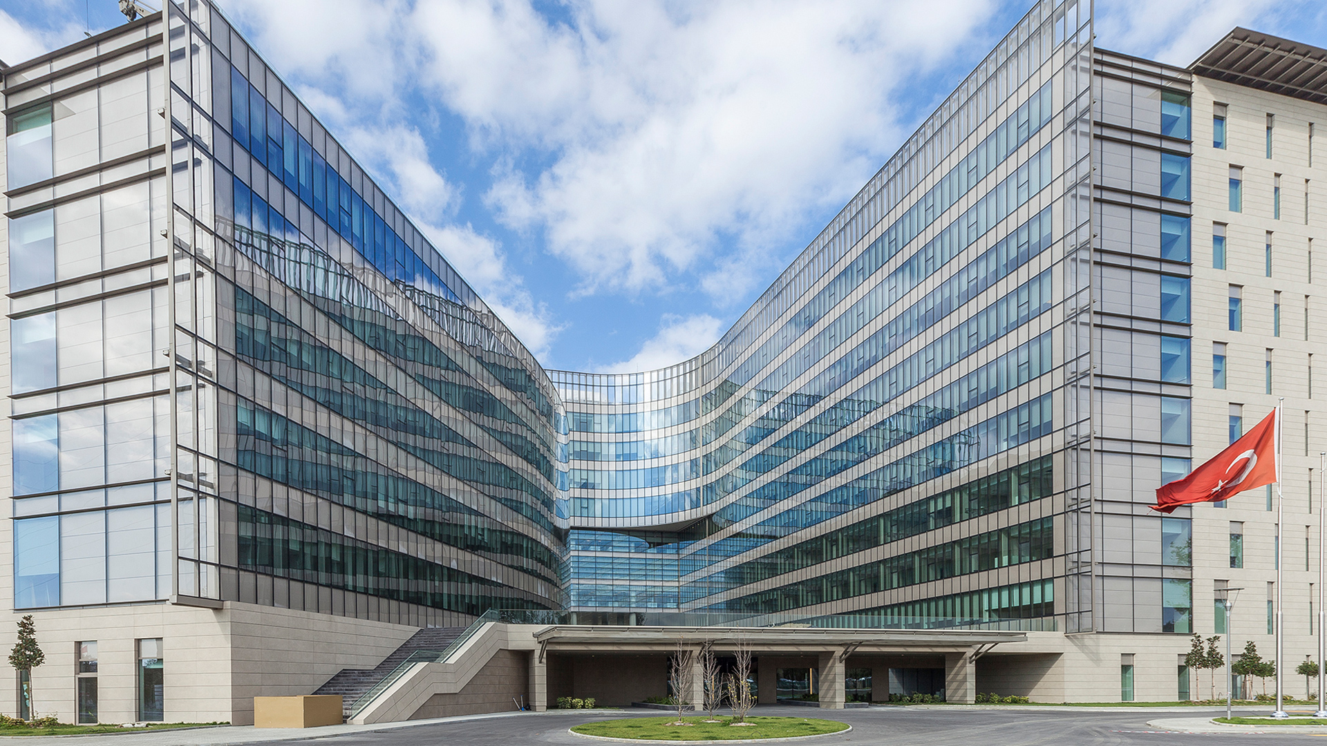 Koç Üniversitesi Hastanesi’nin mimari tasarımı hasta bakım ve tedavisine yaklaşımı yansıtmaktadır. Benimsenen şeffaflık ilkesi uyarınca, hastaların mahremiyetini korumak koşuluyla, iç mekân tasarımında yaygın olarak camdan yararlanılmıştır. Araştırmaya verilen önem nedeniyle, araştırma laboratuvarları hastane kompleksinin merkezine yerleştirilmiştir. Ayrıca, disiplinler ve bölümler arası mekânsal ayrımlardan kaçınılmış, böylece klinik uygulamalarda birbirini tamamlayan, sorgulayan ve ekip ruhuyla hareket eden bütünsel bir sistem kurulması amaçlanmıştır.