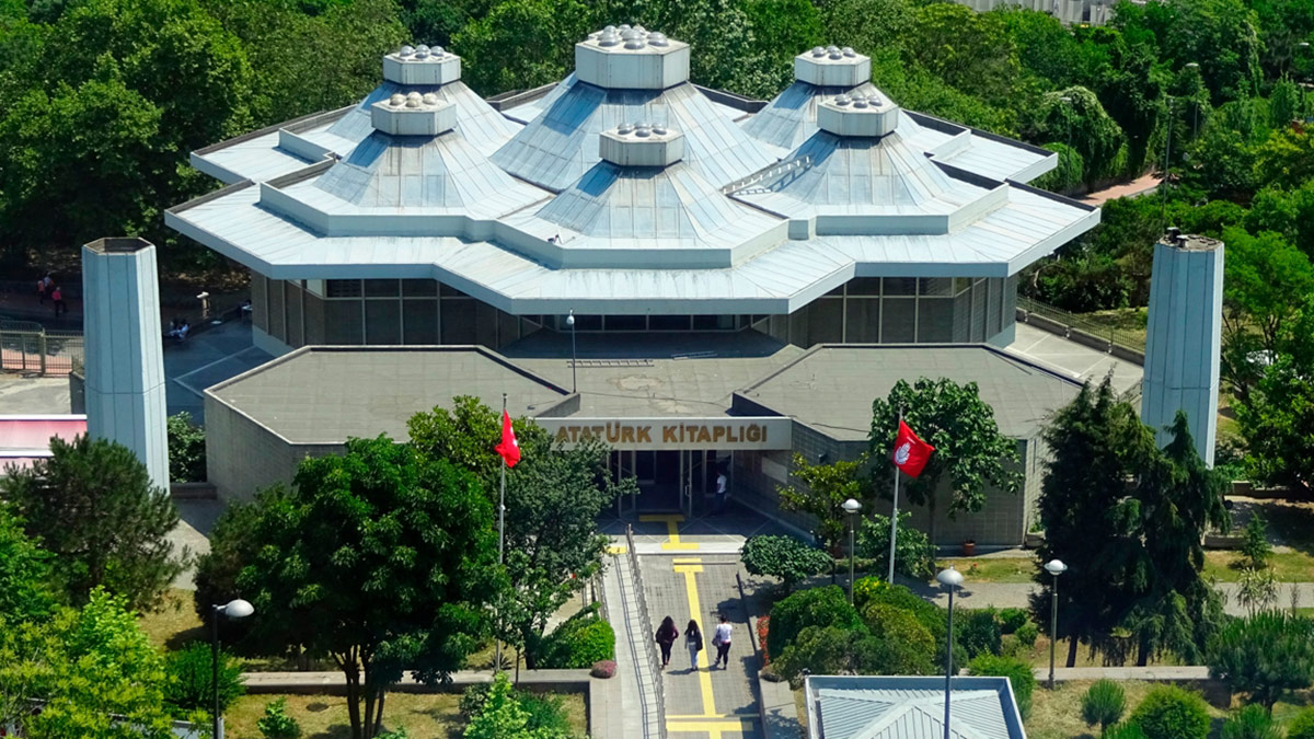 Mimar Sedad Hakkı Eldem tarafından tasarlanan ve Taksim’de Boğaziçi’ni gören bir konumda inşa edilen Atatürk Kitaplığı, 5.000 metrekarelik bir kullanım alanına sahiptir. Eldem’in geleneksel Türk mimarisi ile modernizmi sentezleme çabasını yansıtan, altıgen elemanlardan oluşturulmuş üç katlı betonarme bir binadır. En alt katta bulunan ve altıgen planlı olan kitap deposu yaklaşık 600.000 kitap kapasitelidir. Okuma ve inceleme salonları üstteki iki kattadır. Üst katta, altıgen piramit şeklindeki kubbemsi örtüler altında büyük okuma ve katalog salonu bulunmaktadır. Sergi ve konferans salonu girişin iki tarafındaki kanatlarda yer alır. Kütüphanenin cephesinde, “Bu kitaplık binası Cumhuriyet’in 50. yıldönümünde Türk ulusuna ve İstanbul halkına Koç Holding AŞ ve ilgili şirketler tarafından armağan edilmiştir” yazılı mermer bir levha bulunur.